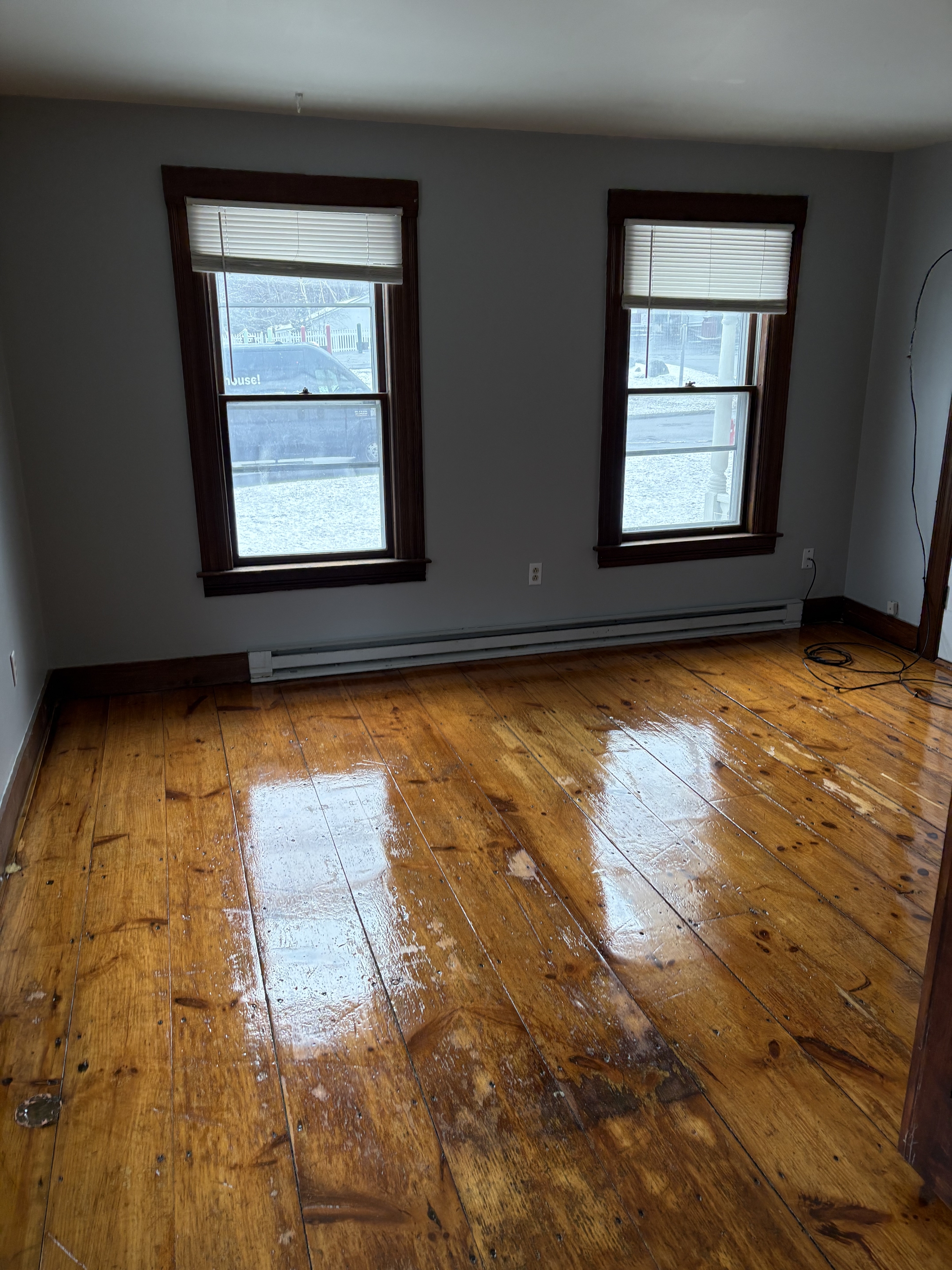This large 3 bedroom, first floor apartment will be available 2-14. Right now updates are under way to include sanding/polying the original hardwood flooring and painting the entire unit. This unit is large and has its own private deck, attached sun room/storage room, and its own laundry. The tenant is responsible for the electric/internet. Owner pays for heat which is a propane fed monitor heater which heats the place comfortably, but there are electric baseboard heaters throughout that could be used to supplement. No smoking and pets considered. I look for a credit score over 600 and the gross monthly income to be 3x the rent. If reaching out, please provide further information about yourself. A non-refundable move in fee of $500 is required in lieu of a full months security deposit.
