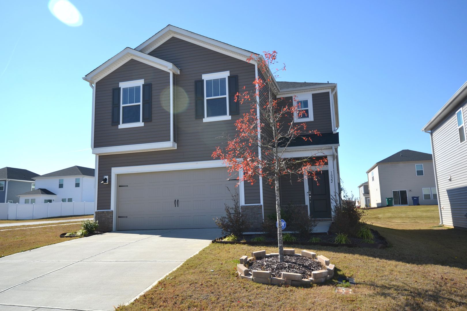 Like New Home - Morgan Hills Like new home in the Morgan Hills subdivision is ready for move in. Enter into the foyer with vinyl plank floor that flow throughout the first floor. The open floor plan has the living room, dining area and kitchen all in one large space. The kitchen features a center island with sink and bar seating, granite counter tops, stainless steel appliance, and tile backsplash. The split floor plan on the second level gives great privacy for the primary suite and features new carpeting. The large primary suite has ample space and a private bathroom with dual sinks, walk in tiled shower with bench seat, separate water closet, tile floors and walk in closet. A great flex space located upstairs is great for an a desk area, play area, reading area or whatever you desire. The spacious secondary bedrooms are great sizes and have ample closet space. The 2nd full bathroom and laundry closet finish off the second floor. Relax or entertain on the rear patio and the open yard space on this nice corner lot. The laundry room currently has a washer and dryer that can be left as a convenience for the tenant if needed.
